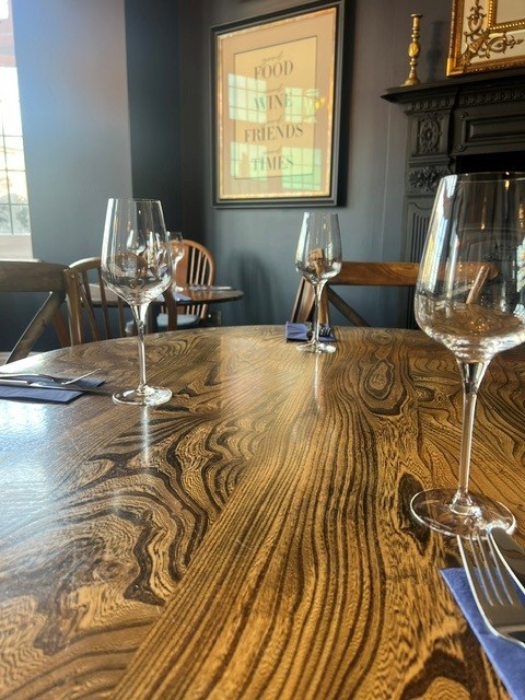 Enjoy your meal in a warm, inviting setting that combines rustic charm with modern comfort, perfect for any occasion.